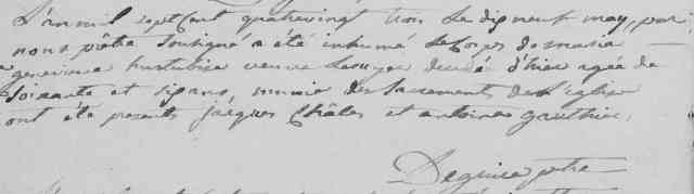 certificat du prêtre curé signé [?] en date du quatorze du meme mois je pretre curé